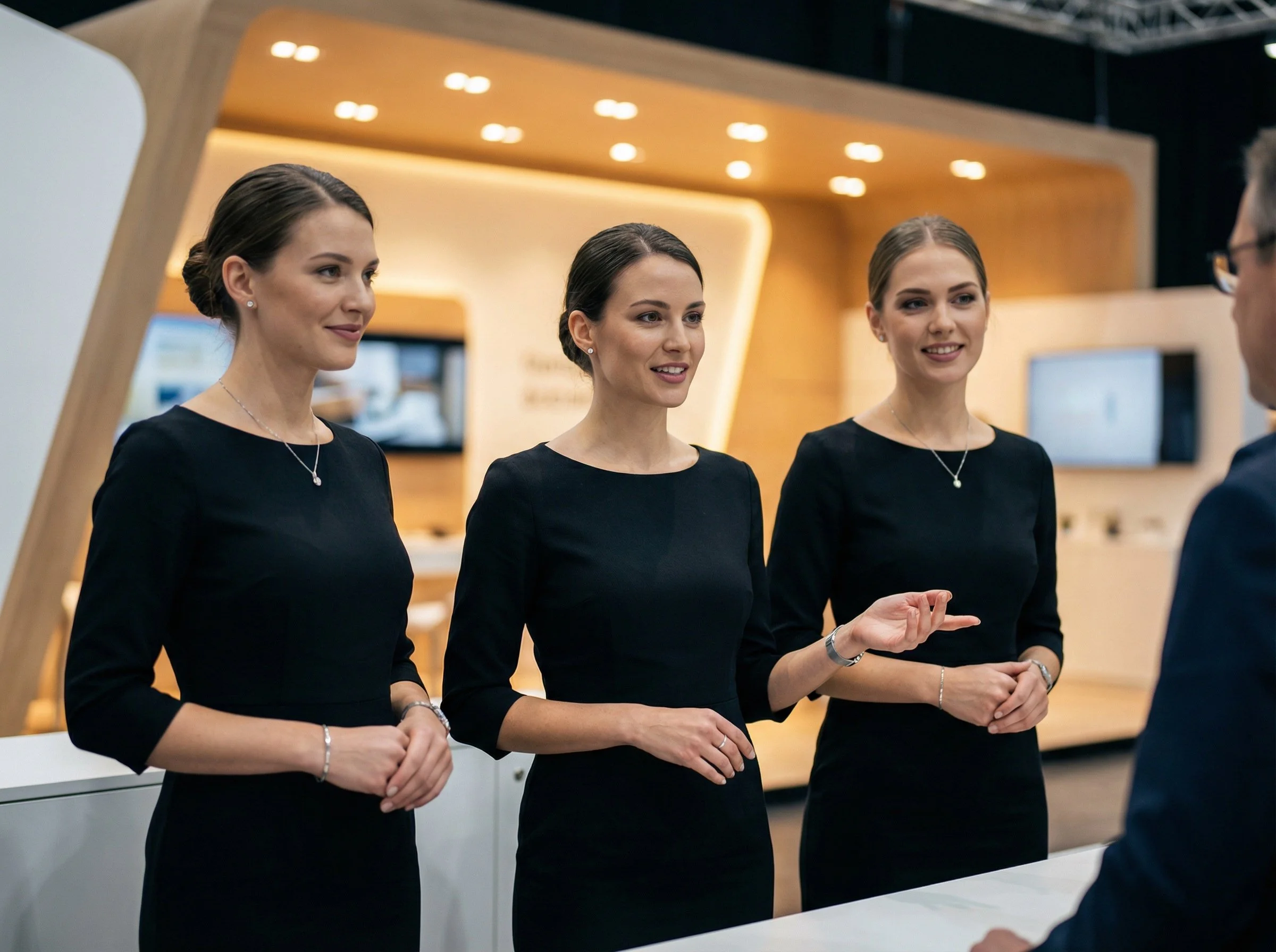 Il nostro personale è selezionato per professionalità, presenza curata e competenze linguistiche, assicurando accoglienza ospiti, supporto allo staff commerciale e gestione delle attività di stand durante tutto l’evento. -